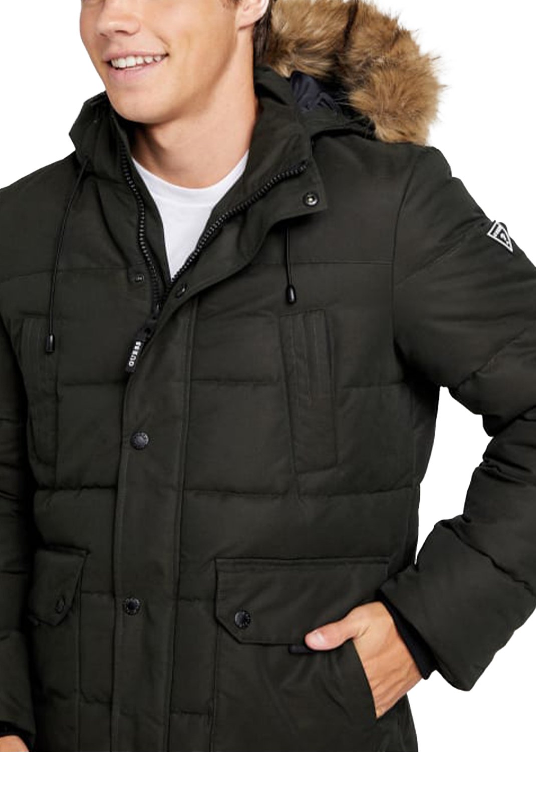X3RL22 WF8F2 – Guess jeans. Tonos: los VERDES. corte: pitillo. Cuello : con capucha. mangas: largas. Logo: parcheado. Bolsa: 4. detalles: capucha desmontable. Cierre: abotonadura + cremallera. Lavado: consulte la información de la etiqueta del producto. Consejo: toma tu talla habitual. Materia: 100% Poliéster.